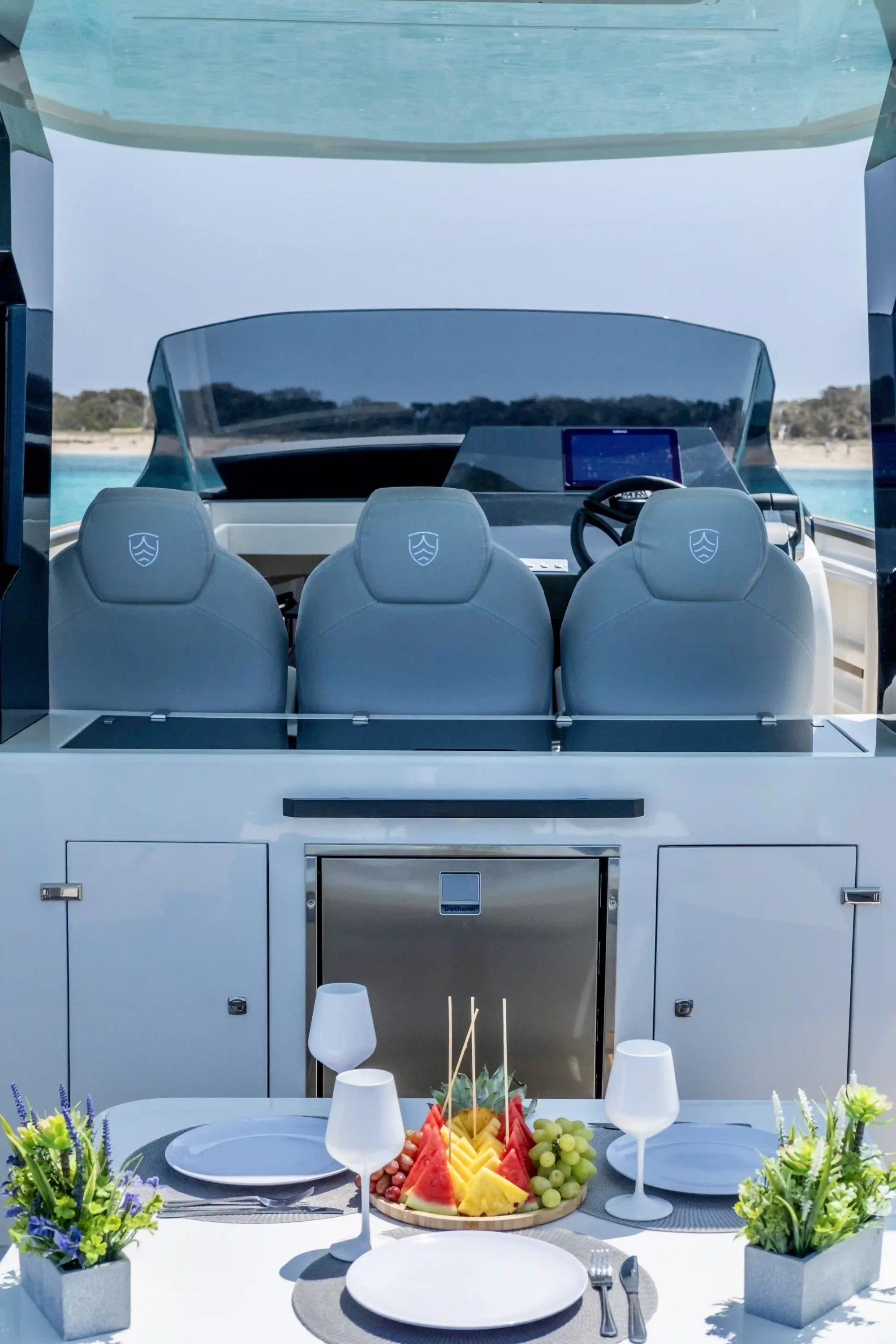 Molinete eléctrico, toma de corriente de 220 V, techo rígido, solárium de popa, WC eléctrico, hélice de proa, puerto USB, cubierta de teca, solárium de proa, Nevera, seguimiento GPS, radio VHF, GPS, plataforma de baño, sonda de profundidad, escalera de baño, ducha exterior, nevera portátil, ducha en la bañera, mesa en la bañera, plataformas laterales, bebidas de cortesía, equipo de snorkel, toallas (bajo petición), hielo, seguro, Limpieza.
