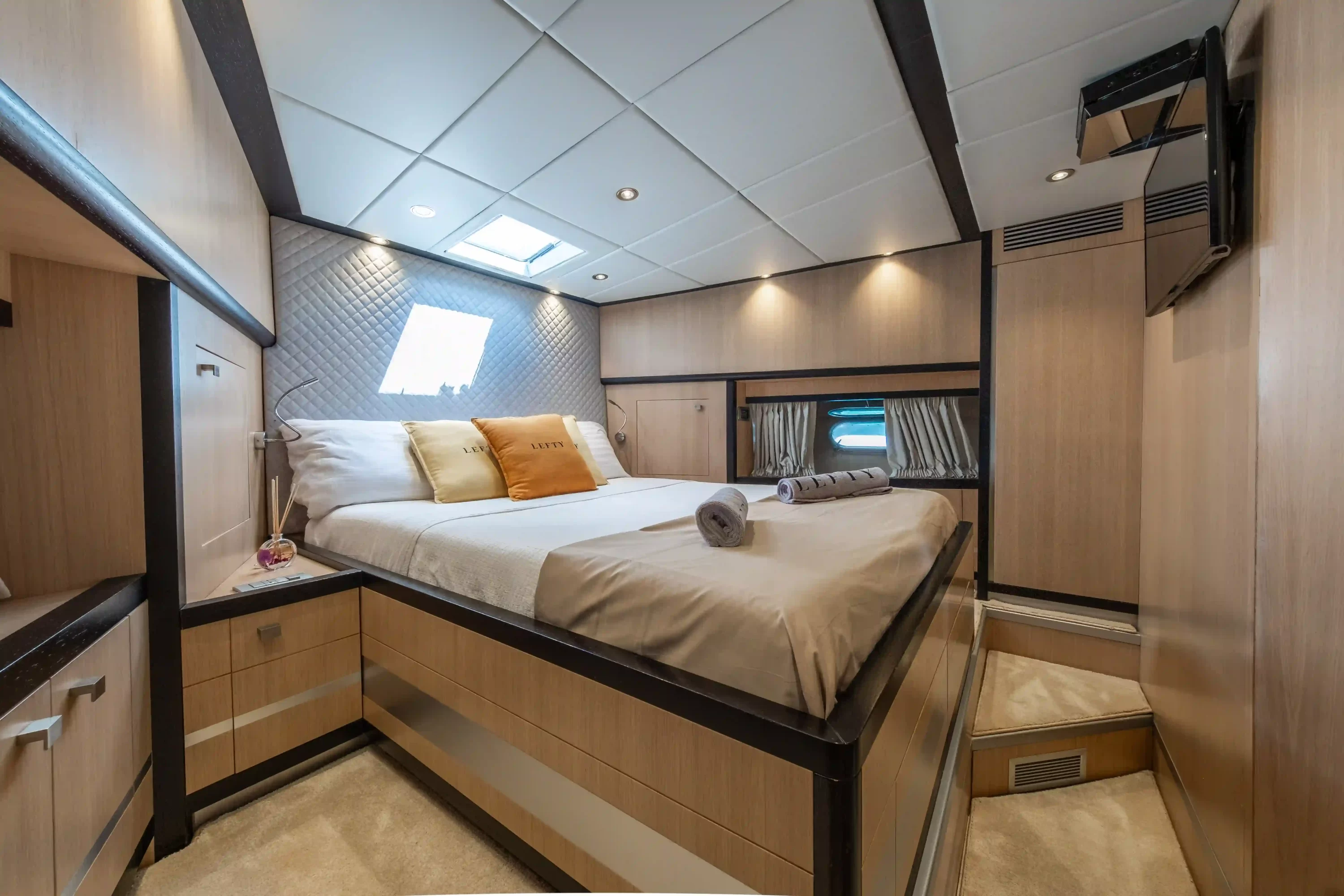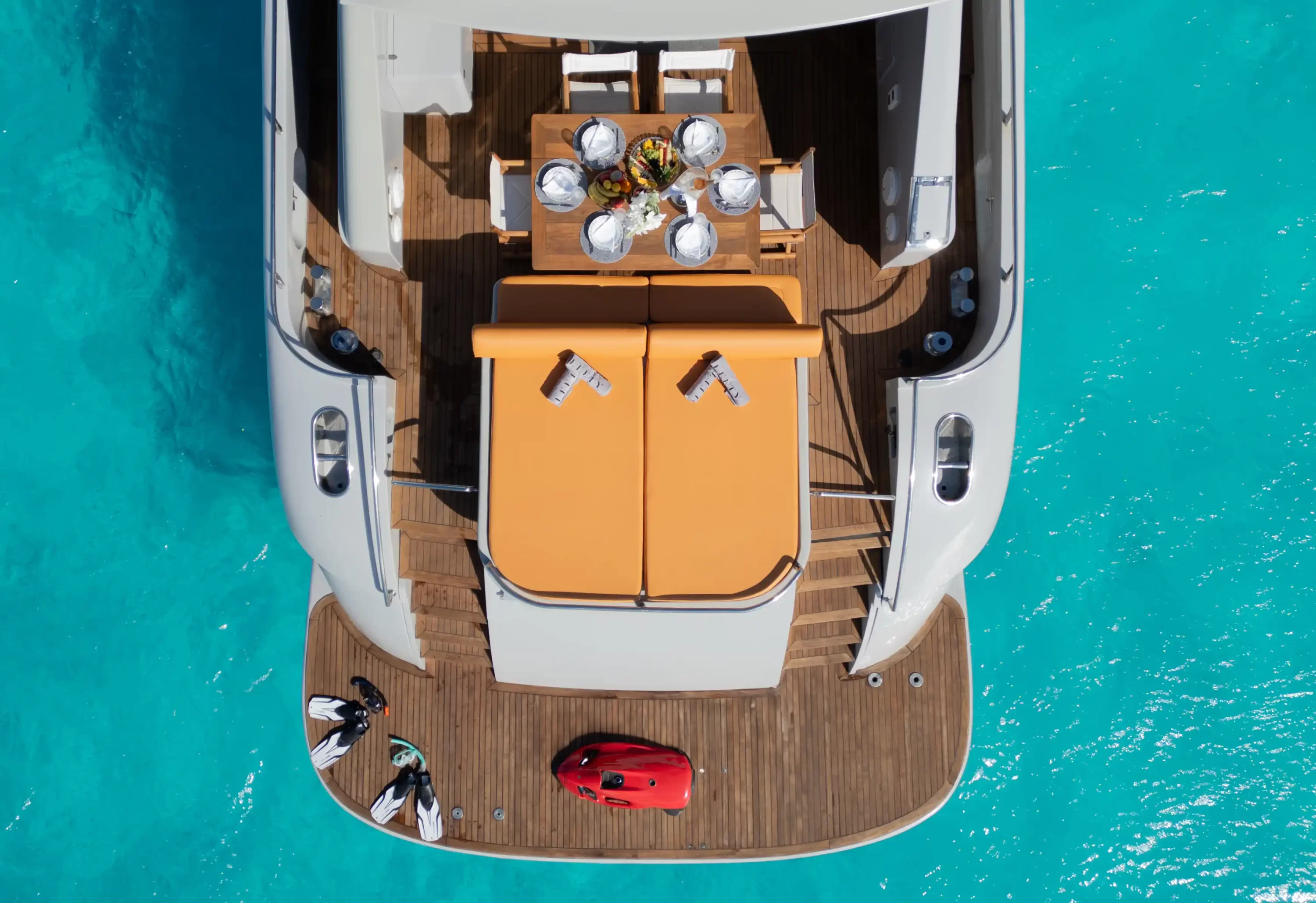 Skipper, stewardess, water, soft drinks, beers, mooring in port base, standart equipment, insurance, snorkel equipment, Paddle surf, shower, towels, stereo, bimini and final cleaning.